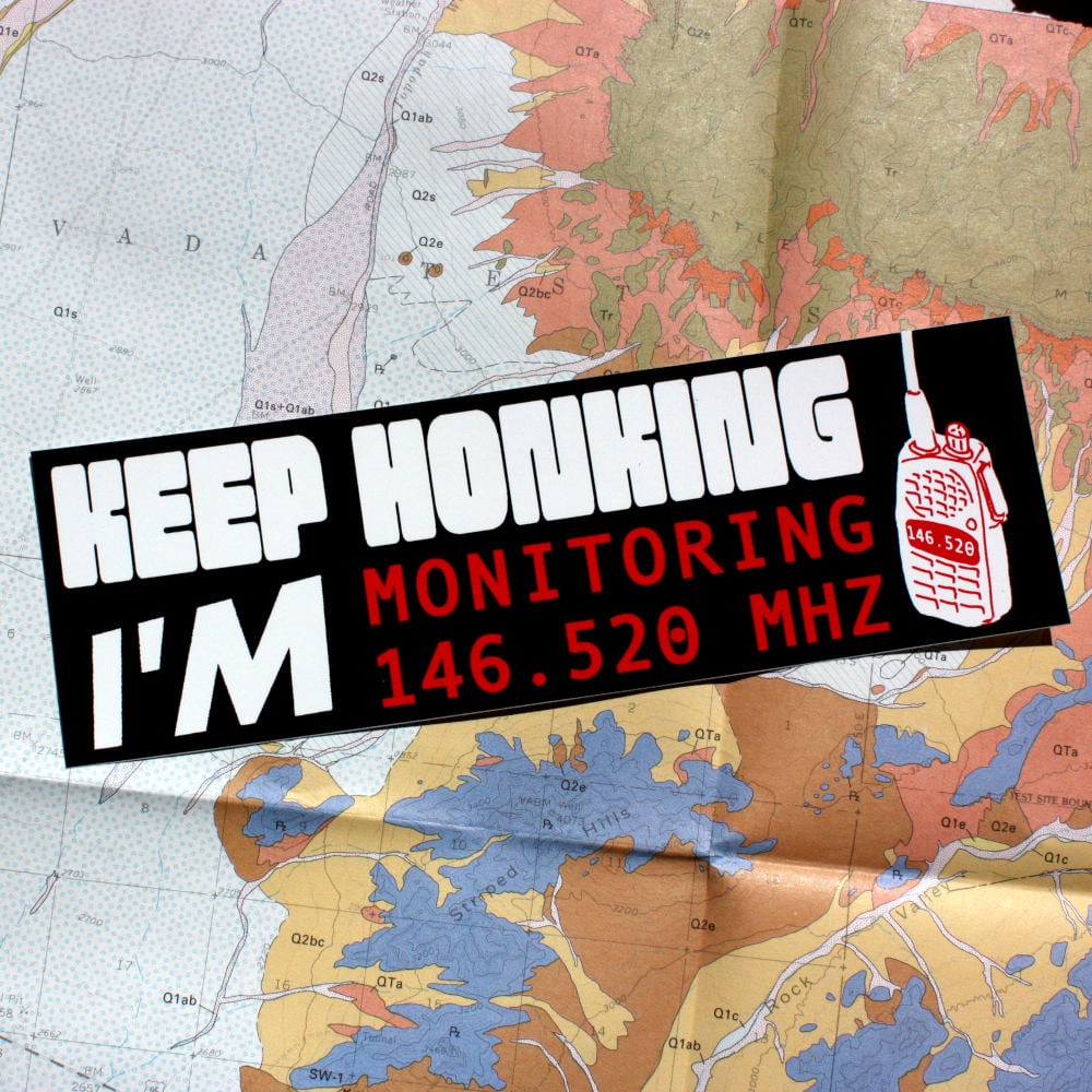 KEEP HONKING I'M MONITORING 146.520 MHz (bumper sticker)